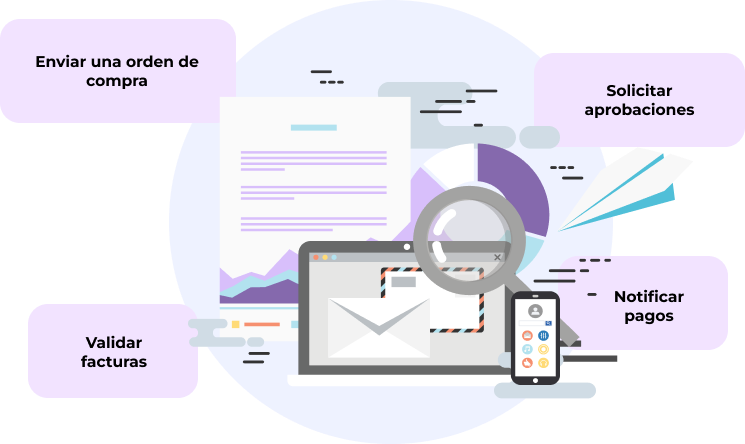 Los estados de los documentos y correos informativos mantienen a todos al tanto del avance hasta el pago.